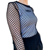 Оригинален дамски артикул: Тениска и топ - от марката Comme Des Fuckdown. Състав: 100% полиестер. Висококачествен външен вид, уникален и елегантен. Модел: black fishnet shirt.