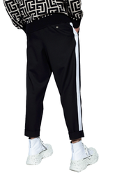 Оригинален мъжки артикул: Панталони - от марката Balmain. Състав: 97% памук 3% еластан. Висококачествен външен вид, уникален и елегантен. Модел: elegant black trousers.