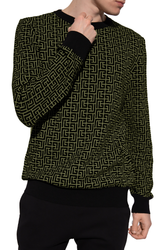 Оригинален мъжки артикул: Пуловери - от марката Balmain. Състав: 55% вълна, 40% лен, 5% полиестер. Висококачествен външен вид, уникален и елегантен. Модел: pattern print pullover.