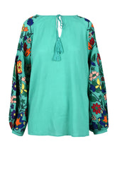 Оригинален дамски артикул: ПУЛОВЕР - от марката DOUUOD. Състав: 100% ПАМУК. Висококачествен, уникален и елегантен външен вид. Модел: бродирана блуза. Ръкави: бухнали.