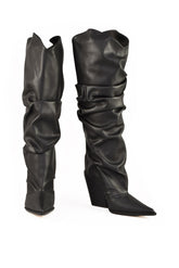 Оригинален дамски артикул: БОТИ - от ALEXANDRE VAUTHIER. Състав: 100% ДРУГИ ВЛАКНА - подметка: 100% КОЖА. Висококачествена, уникална и елегантна визия. Модел: плисирани боти, Ток: Тексас, Височина на тока: 11 см, Височина на халката: 40 см, Обиколка на прасеца: 36 см, Подметка: кожа.