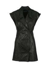 Оригинален дамски артикул: КОЖЕНА РОКЛЯ - от DONDUP. Състав: 100% АГНЕШКА КОЖА. Висококачествен външен вид, уникален и елегантен. Модел: къса кожена рокля, Закопчаване: двуредни тик-так копчета, Джобове: не, Детайли: подплатени.