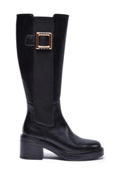 Оригинален дамски артикул: БОТИ - от марката EMANUELLE VEE. Състав: 100% КОЖА - подметка: 100% КАУЧУК. Висококачествен, уникален и елегантен външен вид. Модел: боти, Височина на тока: 7 см, Платформа: 2 см, Височина на халката: 32 см, Обиколка на прасеца: 34 см, Подметка: гума, Закопчаване: цип.