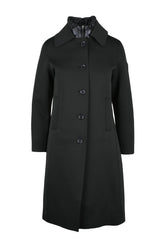 Оригинален дамски артикул: ПАЛТО - от КАНАДСКАТА марка. Състав: 100% ПОЛИЕСТЕР. Висококачествен външен вид, уникален и елегантен. Модел: неопреново палто, закопчаване: копчета, вътрешност: качулка с цип.