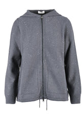 Оригинален дамски артикул: КАРДИГАН - от марката PANICALE. Състав: 66% ДЕВСТВЕНА ВЪЛНА, 18% КОПРИНА, 9% КАШМИР, 4% ПОЛИАМИД, 3% ПОЛИЕСТЕР. Високо качество, уникален и елегантен външен вид. Модел: кардиган с цип, детайли: апликации от пайети.