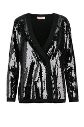 Оригинален дамски артикул: КАРДИГАН - от марката TWINSET. Състав: 45% АКРИЛ 30% ВЪЛНА 25% ПОЛИАМИД. Висококачествен външен вид, уникален и елегантен. Модел: кардиган с пайети по цялата повърхност.