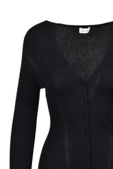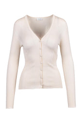 Оригинален дамски артикул: КАРДИГАН - от LANVIN. Състав: 35% КАШМИР 35% КОПРИНА 30% ВЪЛНА. Висококачествен външен вид, уникален и елегантен. Модел: оребрен кардиган.