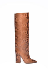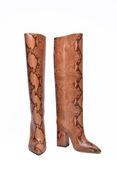 Оригинален дамски артикул: БОТУШИ - от марката PARIS TEXAS. Състав: 100% КОЖА - подметка: 100% КОЖА. Висококачествена, уникална и елегантна визия. Модел: ботуши от питон, Височина на тока: 10 см, Височина на голенището: 38 см, Обиколка на прасеца: 36 см, Подметка: кожа.